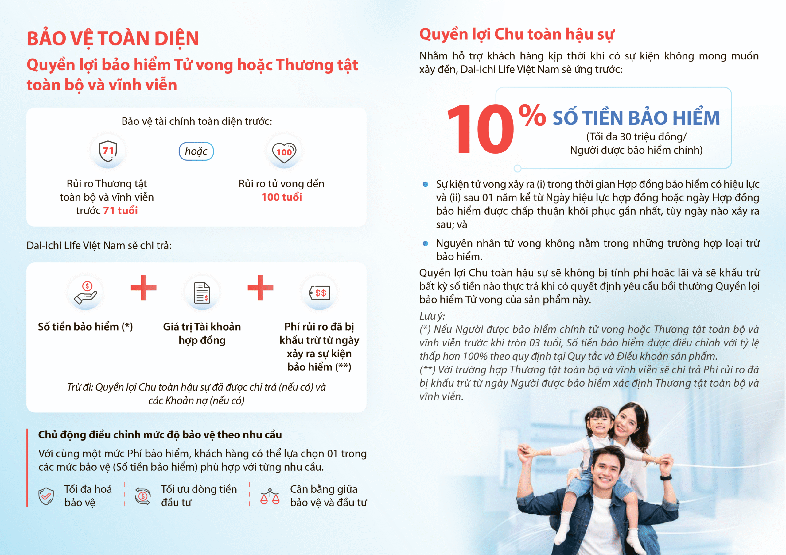 Linh hoạt chọn số tiền bảo hiểu phù hợp nhu cầu với mức phí bảo hiểm không đổi