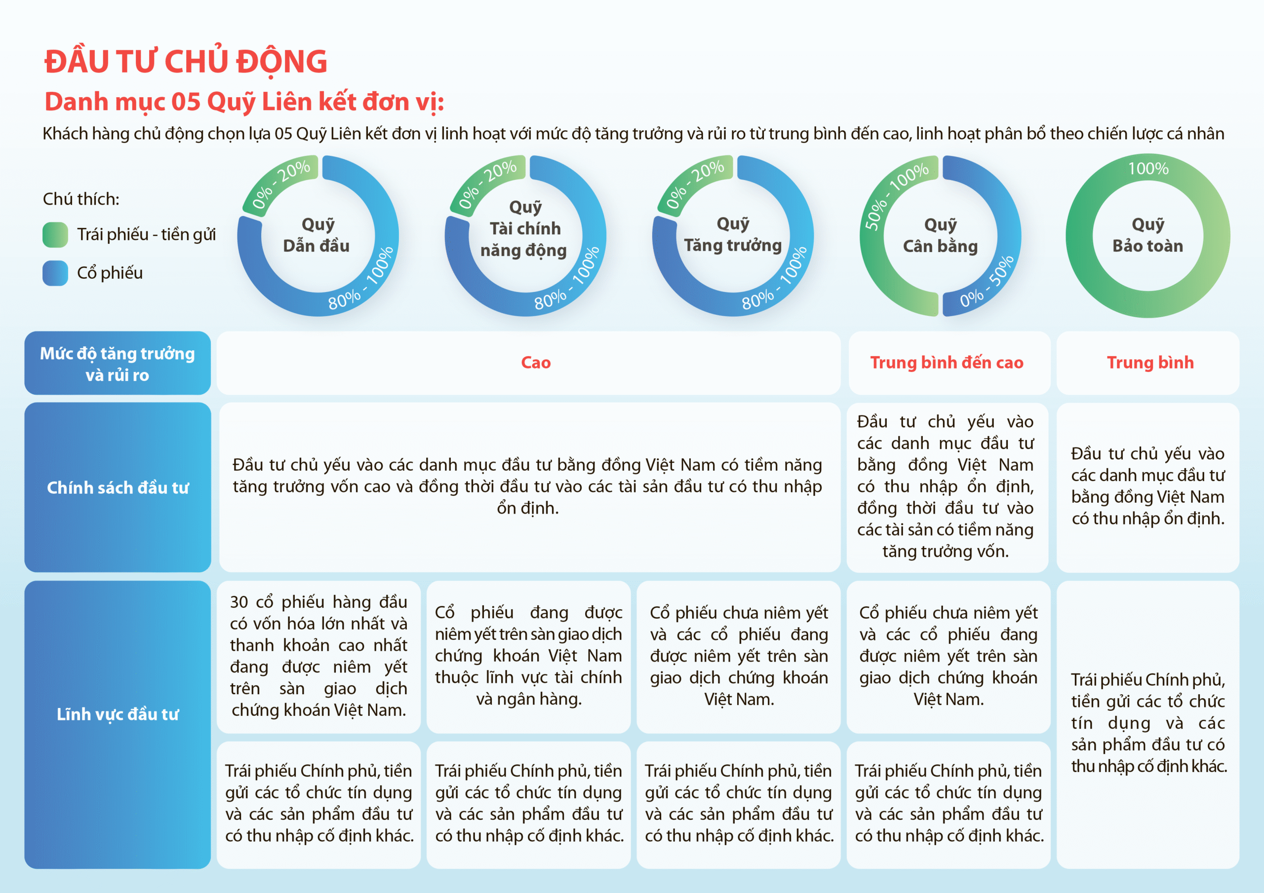 Tự do chọn lựa 5 quỹ đầu tư linh hoạt - Chủ động phân bổ dòng tiền theo kế hoạch tài chính cá nhân